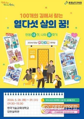 데일리연합 (아이타임즈M 월간한국뉴스신문) 기자 | 충남교육청은 5월 28일부터 29일까지 한국기술교육대학교 제1캠퍼스에서 도내 중학생을 대상으로 ‘2024 충남 직업교육 한마당’을 운영한다고 밝혔다.
