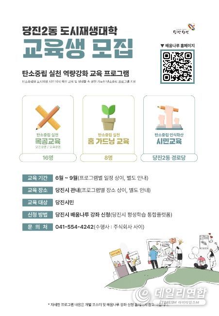 데일리연합 (아이타임즈M 월간한국뉴스신문) 기자 | 당진시가 2024년 6월 17일부터 시민역량을 강화하기 위해 ‘당진2동 도시재생대학’을 추진한다.