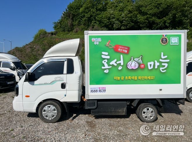 데일리연합 (아이타임즈M 월간한국뉴스신문) 기자 | 홍성군이 5월부터 10월까지 6개월간 지역 특산물 ‘홍성마늘’을 적극 홍보하기 위해 택배 차량을 ‘이동식 홍성마늘 홍보대사’로 활용해 눈길을 끌고 있다.