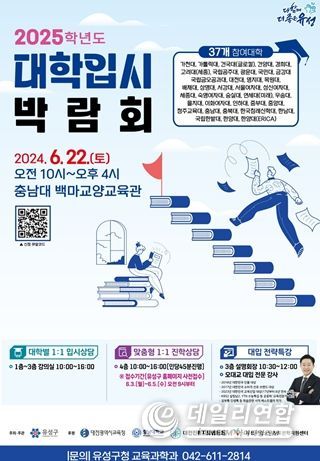 데일리연합 (아이타임즈M 월간한국뉴스신문) 기자 | 유성구는 오는 6월 22일 오전 10시부터 오후 4시까지 충남대학교 백마교양교육관에서 『2025학년도 대학입시박람회』를 개최한다.