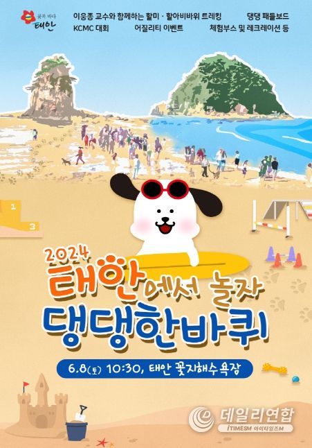 태안군은 오는 6월 8일 오전 10시 30분부터 서해안 3대 낙조로 유명한 안면읍 꽃지해수욕장 일원에서 ‘2024 태안에서 놀자 댕댕한바퀴’라는 주제로 반려동물 해변운동회가 열린다고 밝히고 전국 반려인들의 많은 관심과 참여를 당부했다.