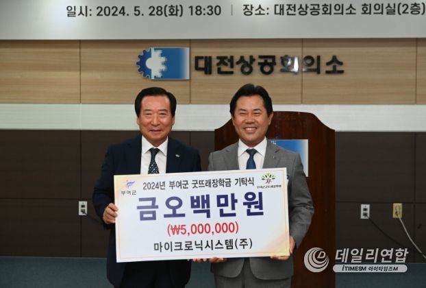데일리연합 (아이타임즈M 월간한국뉴스신문) 기자 | 부여군은 지난 28일 2024 재전부여군민회 임원회의에서 김홍래 회장이 지역인재 육성을 위한 장학금 500만 원을 (재)부여군굿뜨래장학회(이사장 박정현)에 기탁했다고 밝혔다.