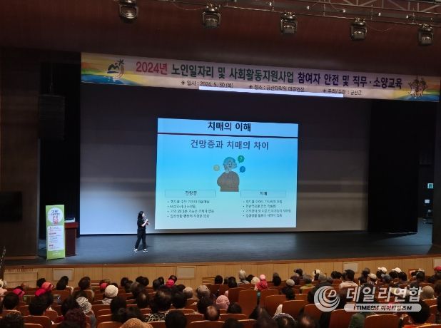 데일리연합 (아이타임즈M 월간한국뉴스신문) 기자 | 금산군은 5월 30일 금산다락원 대공연장에서 공익활동형 늘푸름나누미 사업 등 7개 사업단 참여 어르신 380여 명을 대상으로 안전 및 직무‧소양 교육을 시행했다.