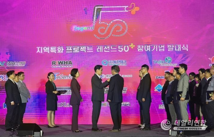 장호종 대전시 경제과학부시장은 30일 울산전시컨벤션센터에서 열린 레전드 50+ 발대식에 참석해 참여 대전기업에 직접 인증 배지를 수여했다.