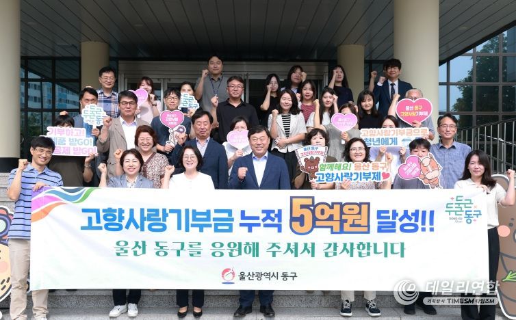 데일리연합 (SNSJTV) 장우혁 기자 | 울산 동구는 고향사랑기부제가 시작된 2023년 1월부터 2025년 8월 31일까지 총 3,962건의 기부가 이어져 고향사랑기부제 누적 기부금이 5억 원을 돌파했다고 밝혔다.