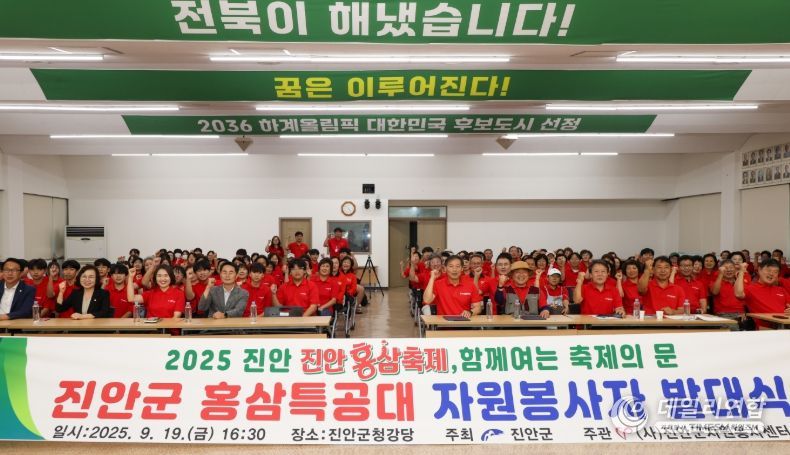 데일리연합 (SNSJTV) 박해리 기자 | 진안군은 19일 오후 군청 강당에서 ‘2025 진안홍삼축제 자원봉사자 발대식’을 열고 본격적인 활동에 들어갔다.
