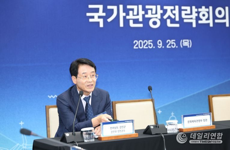 데일리연합 (SNSJTV) 김민제 기자 | 강진원 강진군수가 25일 서울 하이커그라운드에서 열린 제10차 국가관광전략회의에서 직접 전국 최초의 ‘반값여행’ 정책 성과를 발표했다. 이번 회의는 김민석 국무총리 주재로, ‘입국 3천만 시대를 여는 지역관광 확산 전략’을 안건으로 정부 부처와 한국관광공사, 관광업계 주요 인사들이 참석한 가운데 열렸다.