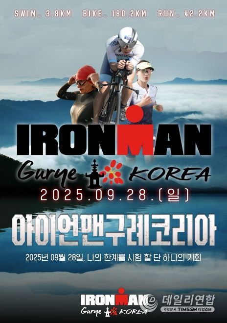 데일리연합 (SNSJTV) 김준 기자 | 대한철인3종협회가 주최하고 전라남도, 구례군, 대한체육회가 후원하는 '2025 아이언맨 구례 코리아 대회(2025 IRONMAN GURYE KOREA)'가 9월 26일부터 29일까지 4일간 구례군 일대에서 개최된다.