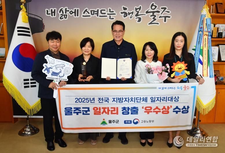 데일리연합 (SNSJTV) 김민제 기자 | 울산 울주군이 고용노동부가 주관하는 ‘2025년 전국 지방자치단체 일자리 대상’ 지역일자리 공시제 기초지자체 부문에서 우수상을 수상했다고 1일 밝혔다.