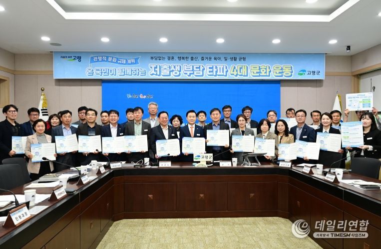 데일리연합 (SNSJTV) 김민제 기자 | 고령군은 10월 27일, 저출생 인식 개선 및 결혼·출산·육아 등에 부담을 주는 관행적 문화를 개혁하기 위해 『저출생 부담타파 4대문화운동』을 간부 공무원을 중심으로 우선 추진했다.