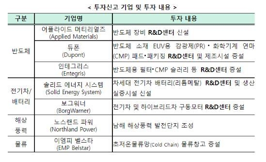 또한 투자신고에 참여하지 않은 기업들도 추가적인 대한(對韓)투자계획을 밝히며 첨단산업 및 연구개발(R&D) 관련 외국인투자에 대한 인센티브 확대, 비수도권 인재 확보 지원 등을 요청했다.