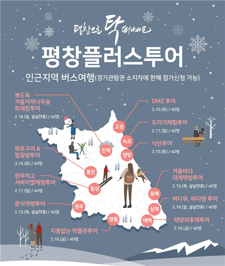경기관람 전·후일을 활용해 당일치기로 강원도를 조금 더 즐길 수 있는 ‘인근지역 버스여행’도 있다.