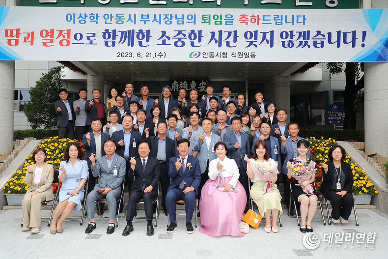 이날 퇴임식에는 가족들과 안동시청·경북도청 직원 500여 명 및 각계 기관장, 지인들이 함께하며 이 부시장의 명예로운 퇴임을 축하하고 새로운 출발을 응원했다. 권기창 안동시장은 지난 1년 6개월간 땀과 열정으로 경북 중심도시 안동의 비전을 밝혀온 이 부시장에게 공로패를 수여했다.