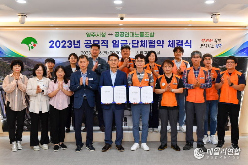 데일리연합(월간, 한국뉴스신문) 김재욱 기자 | 영주시는 26일 공공연대노동조합과 '2023년 일반공무직 임금‧단체협약'을 체결했다고 밝혔다.