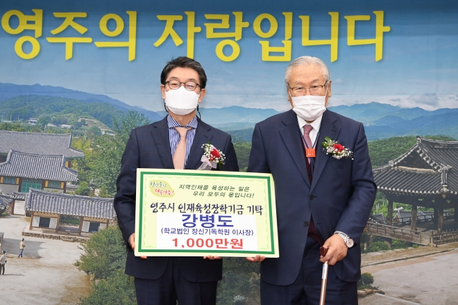 (강병도 이사장 영주시 인재육성장학금 기탁 사진 영주시 제공)