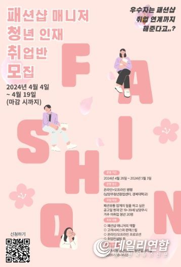 데일리연합(월간, 한국뉴스신문) 주기범 기자 | 남양주시는 ‘FSM 패션샵매니저 청년 인재 취업반’ 교육 참여자를 오는 19일까지 선착순 모집한다고 9일 밝혔다.