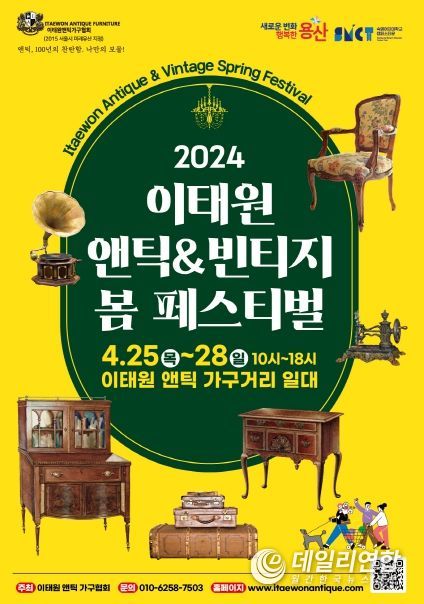 데일리연합(월간, 한국뉴스신문) 박해리 기자 | 서울 용산구가 이태원 앤틱가구거리에서 오는 25~28일 4일간 오전 10시부터 오후 6시까지 열리는 ‘앤틱&빈티지 봄 페스티벌’을 지원한다. 고가구 특화상권을 홍보하고 관광 인프라 기반을 조성해 동네 골목상권을 회복한다는 취지다.