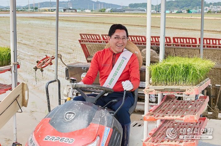 데일리연합 (아이타임즈M 월간한국뉴스신문) 기자 | 박경귀 아산시장이 모내기 시즌을 맞이해 17일 아산맑은쌀의 신품종인 해맑은벼·달맑은벼 이앙행사에 참여했다.