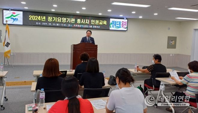 데일리연합 (아이타임즈M 월간한국뉴스신문) 이성용 기자 | 옥천군은 3일 옥천통합복지센터 대회의실에서 장기요양기관 종사자 인권 교육을 실시했다. 본 교육은 장기요양기관 종사자 필수이수 과정으로 충북노인보호전문기관에서 진행했다.