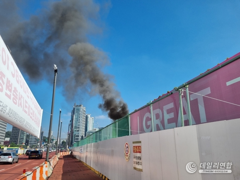 데일리연합 (아이타임즈M ) 곽중희 기자 | 삼성역 현대자동차(대표 장재훈) GBC 영동대로 복합개발 공사현장에 원인 모를 화재가 발생해 검은 연기가 치솟고 있다.