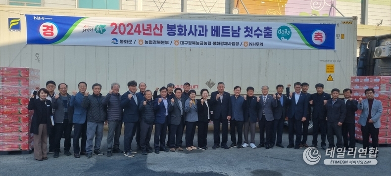 데일리연합 (SNSJTV. 아이타임즈M) 김재욱 기자 | 봉화군은 지난 22일 대구경북능금농협 봉화경제사업장에서 2024년산 봉화사과의 베트남 수출 선적식을 가졌다.