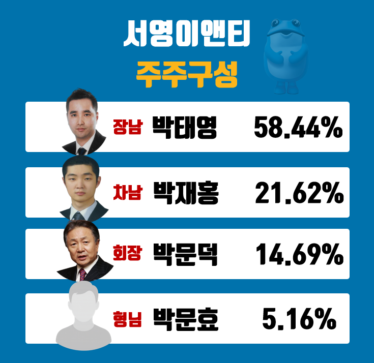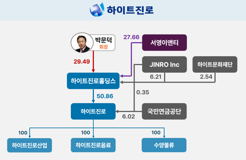 박태영 사장은 하이트진로의 직접 지분이 없음에도 서영이앤티를 통해 그룹을 지배하는 구도를 확보했다. 이는 상속세를 피한 경영권 승계 구조로 기능했고, 실제로 박 사장은 현재 하이트진로의 전략·마케팅 전반을 실질적으로 이끄는 인물이다.