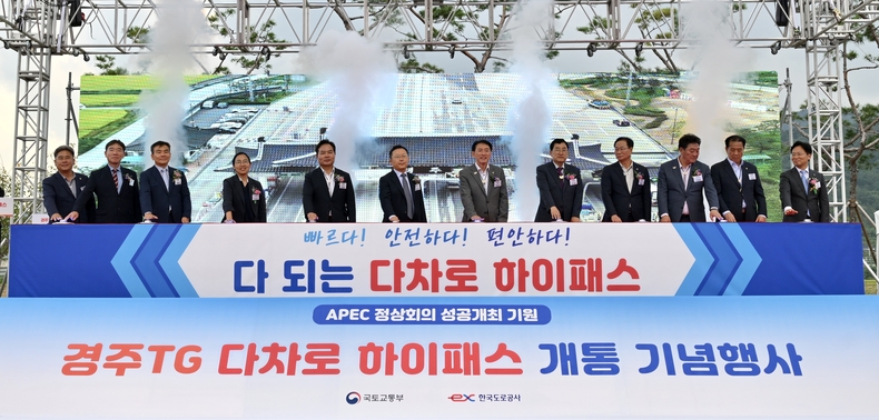 데일리연합 (SNSJTV) 김재욱 기자 | 2025년 APEC 정상회의 성공개최를 기원하는 의미를 담아 한국도로공사는 경부고속도로 경주요금소 다차로 하이패스 개통식을 개최했다고 1일 밝혔다.