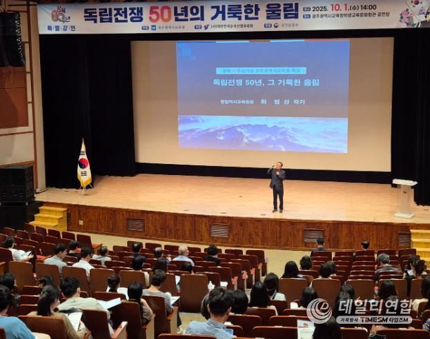 데일리연합 (SNSJTV) 김준 기자 | 광주시교육청은 1일 학생교육문화회관 공연장에서 광복 80주년을 맞아 인문학 강연 ‘독립운동 50년의 거룩한 울림’을 진행했다.
