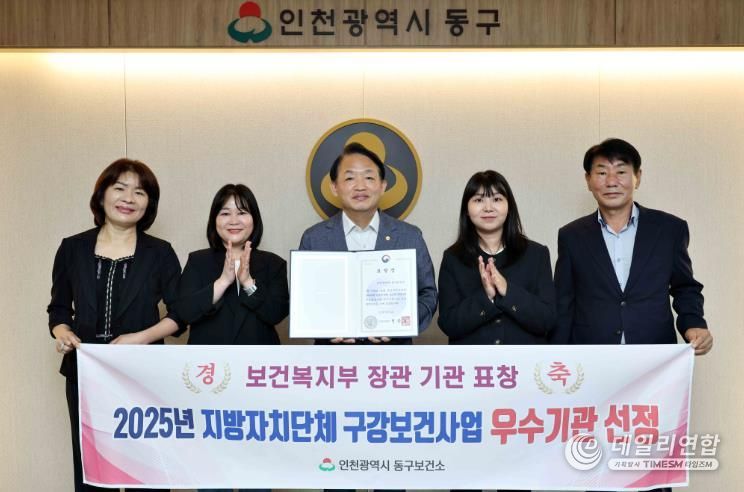 데일리연합 (SNSJTV) 김민제 기자 | 인천 동구는 지난달 26일 서울시 용산구 피스앤파크컨벤션서 열린 ‘2025년 지방자치단체 구강보건사업 성과대회’에서 보건복지부 장관상을 수상했다고 밝혔다.
