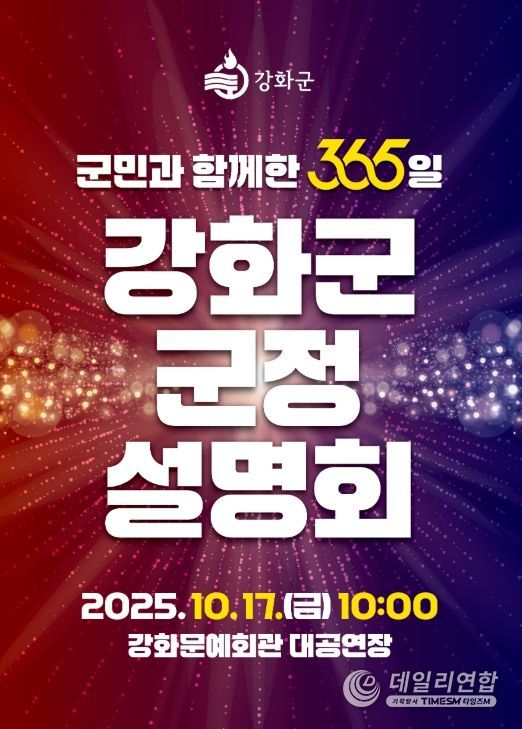 데일리연합 (SNSJTV) 김민제 기자 | 강화군은 오는 10월 17일 오전 10시 강화문예회관에서 “군민과 함께한 365일, 강화군 군정 설명회”를 개최한다.