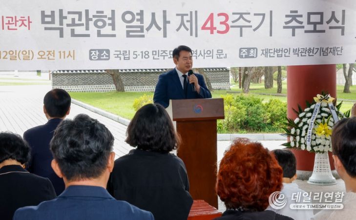 데일리연합 (SNSJTV) 김준 기자 | 이정선 광주시교육감이 12일 국립5·18민주묘지 ‘역사의 문’ 앞에서 열린 ‘민주화의 새벽기관차 박관현 열사 제43주기 추모식’에 참석했다.