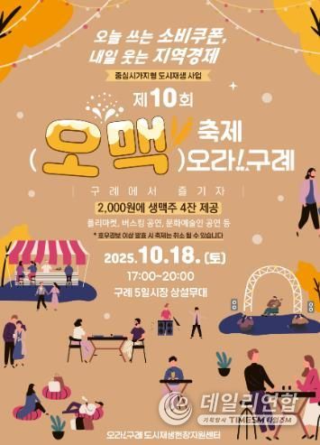 데일리연합 (SNSJTV) 김민제 기자 | 전남 구례군은 오는 10월 18일 오후 5시부터 8시까지 구례읍 5일시장 상설무대 일원에서 '제10회 오맥축제 오라! 구례, 구례에서 즐기자'를 개최한다고 밝혔다.