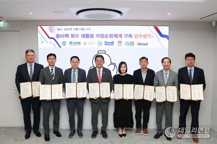 참여 기업은 (사)한국포장재재활용사업공제조합(이사장 김동진), 대상웰라이프(주)(대표이사 서훈교), ㈜대흥리사이클링(대표이사 박혜란), ㈜매일유업(대표이사 이인기), 에스아이지콤비블록코리아(주)(사장 조명현), ㈜정식품(대표이사 정연호), 한솔제지(주)(대표이사 한경록)로 종이팩 수거·분리배출 홍보·사용 확대·보상 프로그램 운영·친환경 제품 생산 등 각자의 역할에서 협력을 다짐했다.