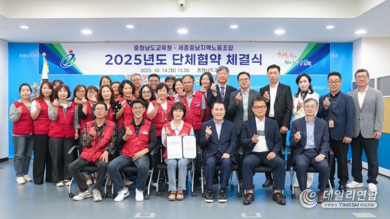데일리연합 (SNSJTV) 김준 기자 | 충남교육청은 10월 14일 도교육청 회의실에서 세종충남지역노동조합과 단체협약을 체결했다.