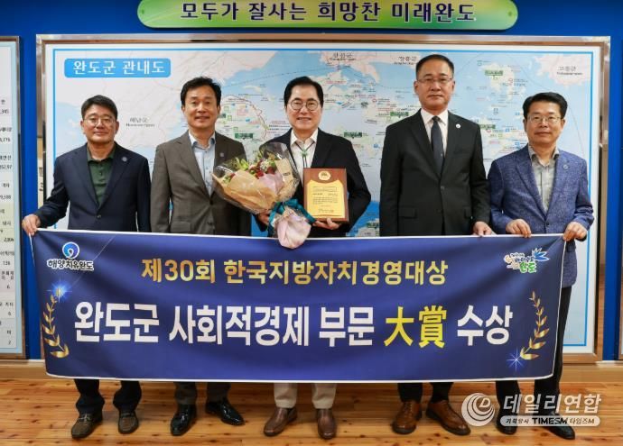 데일리연합 (SNSJTV) 김민제 기자 | 완도군은 14일 서울 공군호텔에서 열린 '제30회 한국지방자치경영대상' 시상식에서 사회적 경제의 저변을 확대하고 주민 참여형 순환 경제 모델을 정착시킨 공로를 인정받아 ‘대상’을 수상했다.