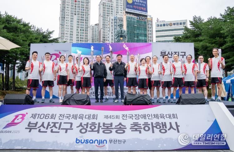 데일리연합 (SNSJTV) 김민제 기자 | 부산 부산진구는 10월 14일 오전 10시 송상현동상 앞에서 2025년 전국(장애인)체육대회 부산진구 성화봉송 축하행사를 우천에도 불구하고 성황리에 마쳤다고 밝혔다.