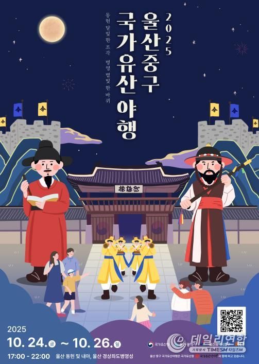 데일리연합 (SNSJTV) 김민제 기자 | 울산 중구가 오는 10월 24일부터 10월 26일까지 사흘 동안 울산 동헌 및 내아, 성남동 문화의거리, 울산 경상좌도병영성 일원에서 ‘2025 울산 중구 국가유산 야행’ 행사를 개최한다.