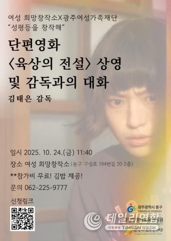 영화제는 오는 24일 오전 11시 40분부터 오후 1시까지 여성희망창작소(동구 구성로 194번길 20, 2층)에서 진행되며, 참석자에게는 간단한 브런치가 제공된다.