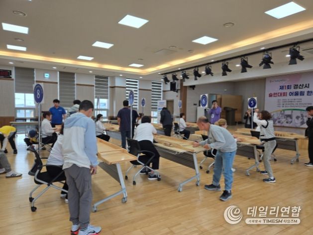 데일리연합 (SNSJTV) 김민제 기자 | 경산시평생교육지도자협의회는 20일 압량읍 행복발전소에서 어르신 및 장애인 등 150여 명이 참여한 '제1회 경산시 어르신 슐런 대회 어울림 한마당'을 개최했다.