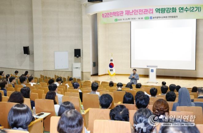데일리연합 (SNSJTV) 김준 기자 | 광주시교육청은 23일 광주시교육청시민협치진흥원 대강당에서 학교장, 교감, 행정실장 등 350여 명을 대상으로 ‘2025학년도 학교안전책임관 재난안전관리 역량강화 연수(2기)’를 실시했다.