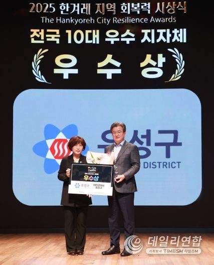 데일리연합 (SNSJTV) 김민제 기자 | 대전 유성구가 지난 23일 서울 중구 대한상공회의소 국제회의장에서 열린 '2025 한겨레 지역 회복력 평가' 시상식에서 전국 10대 우수 지방자치단체에 선정됐다.