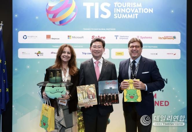 데일리연합 (SNSJTV) 김민제 기자 | 이상일 용인특례시장은 23일 오후(현지 시간) '관광 혁신 서밋(Tourism Innovation Summit) 2025'가 열리고 있는 스페인 세비야의 피베스에서 호세 루이스 산스 세비야 시장에게 용인을 알리는 특별한 선물을 전달했다.