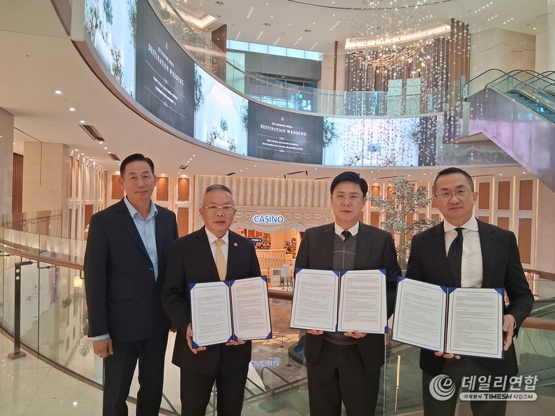 이번 협약식은 제주 신화월드 내 신화월드호텔메리어트관에서, 신화월드 티고 대표, 랜딩카지노 벤렁 대표, 보민엔터테인먼트 김영준 대표, 그리고 대외이사 이일용 이사가 참석했다.