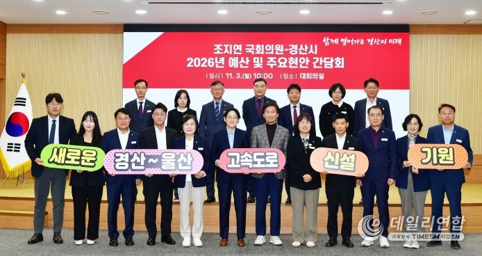 데일리연합 (SNSJTV) 장우혁 기자 | 경산시는 3일 시청 대회의실에서 조지연 국회의원과 간담회를 개최하고, 2026년 정부 예산 확보 및 주요 시정 현안 사업에 대한 긴밀한 협력 방안을 논의했다.