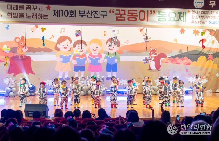 데일리연합 (SNSJTV) 김민제 기자 | 부산진구는 4일 부산진구청 대강당에서 어린이집 영유아와 보육교직원 및 학부모 400여 명이 참석한 가운데 ‘2025년 제10회 부산진구 꿈동이 동요제’를 개최했다고 밝혔다.