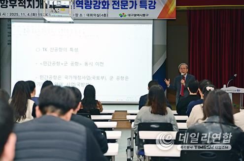 데일리연합 (SNSJTV) 김민제 기자 | 대구 동구청은 지난 4일 구청 대회의실에서 직원들을 대상으로 ‘공항후적지개발 직원 역량강화 전문가 특강’을 실시했다.