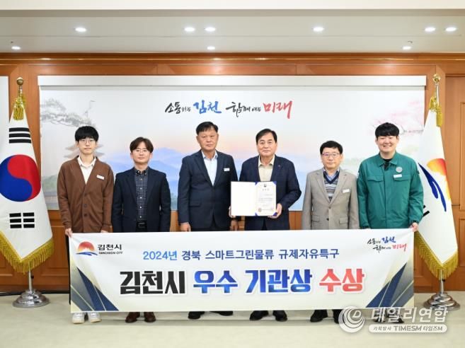 데일리연합 (SNSJTV) 김민제 기자 | 김천시는 지난 11월 6일 대전에서 이틀간 열린 중기부 주최 '혁신특구 ON 2025' 행사에서 스마트그린물류 규제자유특구 운영 성과를 인정받아 우수기관상을 수상했다고 밝혔다.