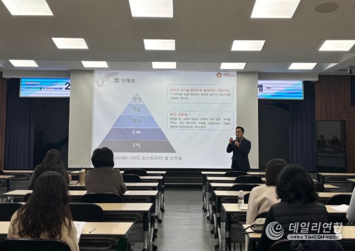 데일리연합 (SNSJTV) 김준 기자 | 제주특별자치도교육청은 18일 교육청 대회의실에서 교원 40여 명이 참여한 가운데 ‘2025 교원 대상 헌법교육 특강’을 실시했다.