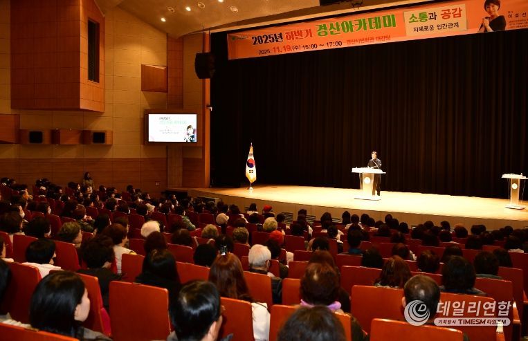 데일리연합 (SNSJTV) 김민제 기자 | 경산시는 19일 경산시민회관 대강당에서 시민 600여 명이 참여한 가운데 『2025년 하반기 경산 아카데미』를 성황리에 개최했다. 이번 경산 아카데미는 숭실사이버대학교 학과장 이호선 교수를 초청하여‘소통과 공감, 지혜로운 인간관계’라는 주제로 진행됐다.
