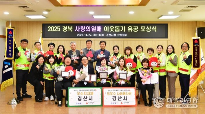 데일리연합 (SNSJTV) 김민제 기자 | 경산시는 27일 시청 소회의실에서 개최된 ‘2025 경북 사랑의열매 이웃돕기 유공 포상식’에서 2년 연속 지자체 부문 우수상을 수상했다.
